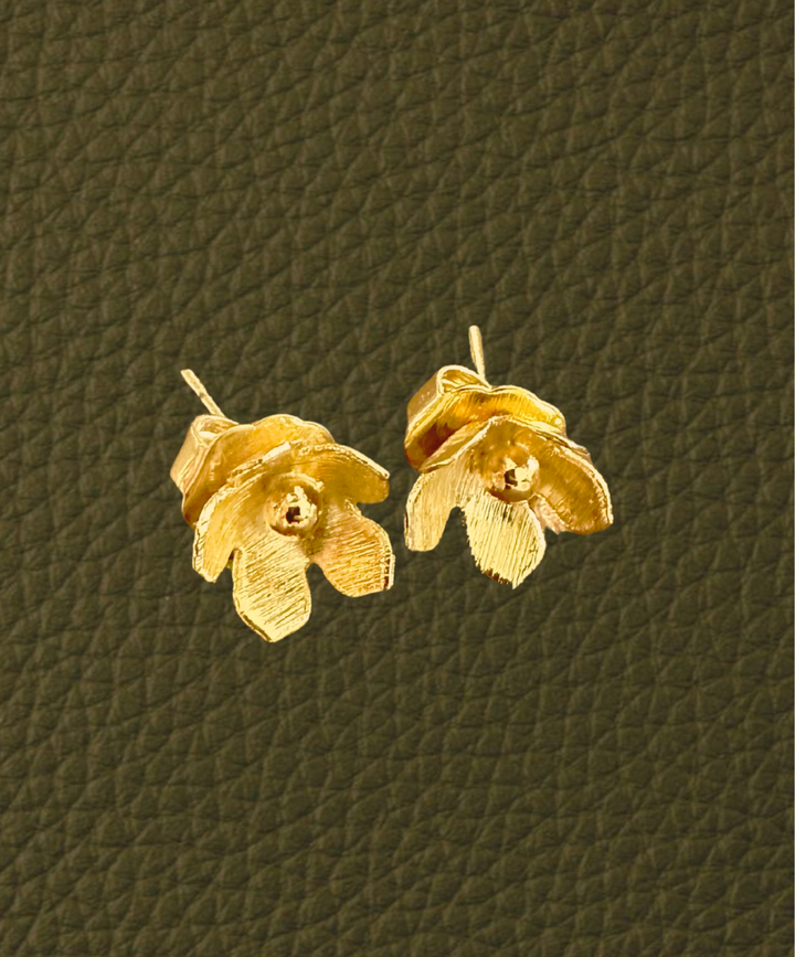 Topitos en forma de flor. Delicados y muy femeninos. Viene con tuercas grandes. Hechos en broce con baño en oro de 24K